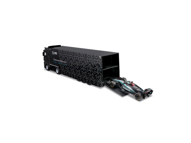 Découvrez la précision et le prestige de la Formule 1 moderne avec ce kit maquette Mercedes de Bburago. À une échelle fidèle 1:43, cet ensemble méticuleusement réalisé capture à la fois la Mercedes W15 E de course et son camion porte-voitures, avec des détails prêts à exposer pour les collectionneurs passionnés et les fans de sport automobile.