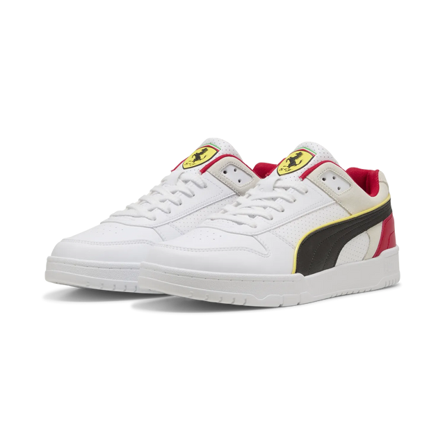 Channel casual style on and off the court with these retro sneakers inspired by classic pop culture and basketball style. The nostalgic style captures the essence of old-school cool, featuring the classic PUMA Formstrip in a contrasting design and subtle big cat branding. With its unique color combination, including White and Rosso Corsa, these shoes are not only stylish but also comfortable for all-day wear. Whether you're on the court or out and about, these low-top boots offer the perfect blend of fashion and function. Experience the heritage of Ferrari and PUMA with every step you take.