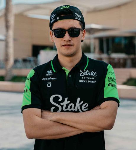 Channel your inner champion and show your support for the Kick Sauber Stake F1 Team with official team polo shirts and t-shirts!