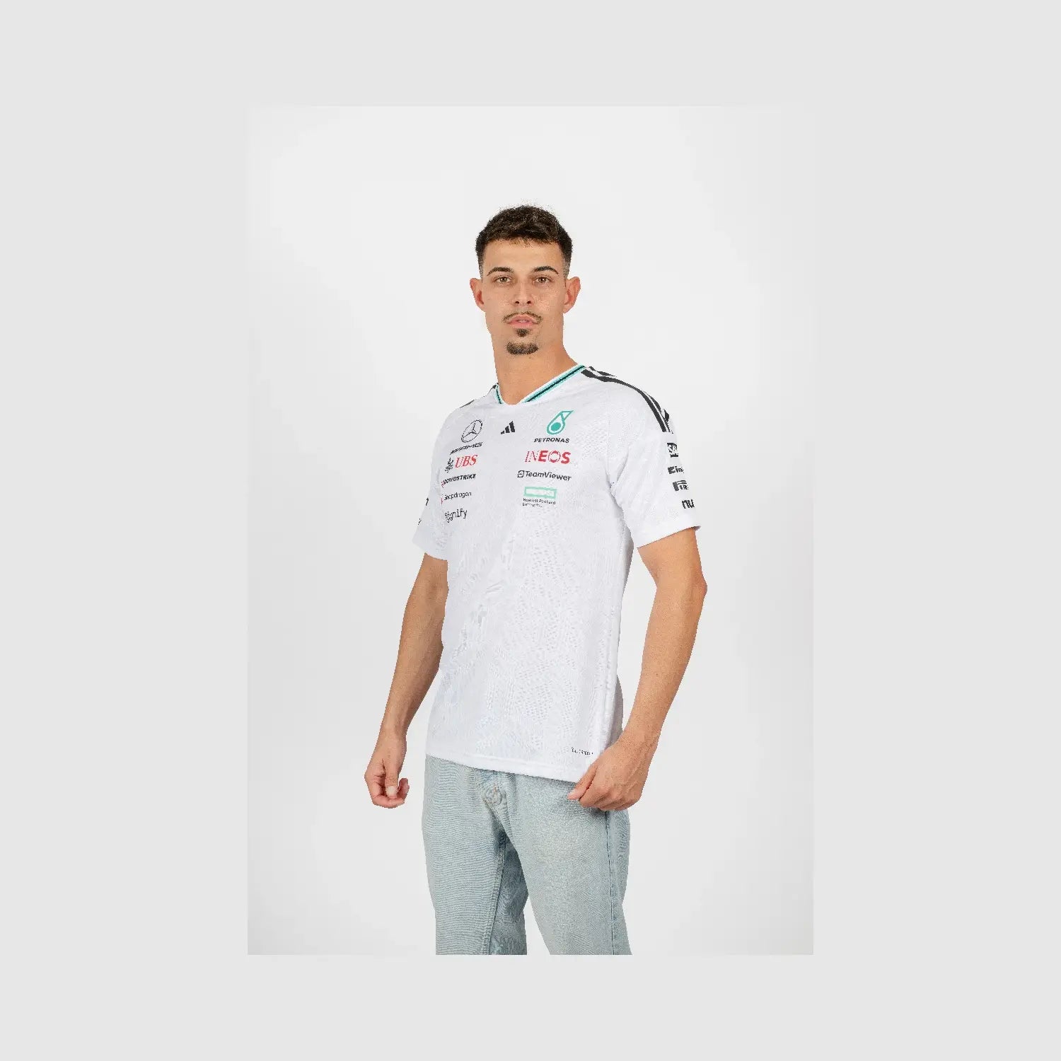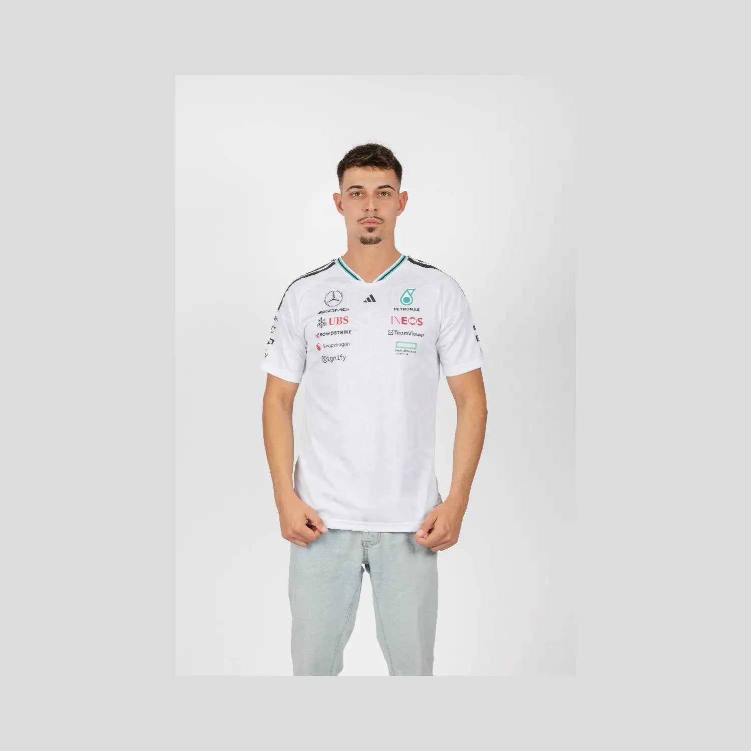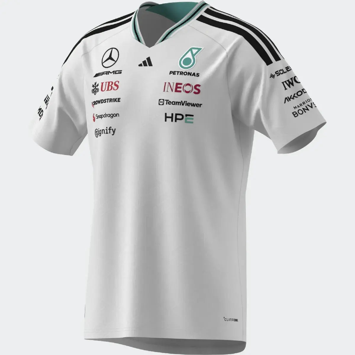 Polo Mercedes, équipe, adidas, pilotes, blanc